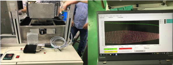 傳感器被安裝在加熱爐底部的固支平臺上,作為測試部件串聯(lián)在結(jié)構(gòu)中,平臺下方是三軸聯(lián)動(dòng)機(jī)床,測試過程中,我們對傳感器的受熱溫度進(jìn)行監(jiān)測,發(fā)現(xiàn)傳感器上方安裝板的溫度在40℃左右,這個(gè)溫度并不影響傳感器的使用;