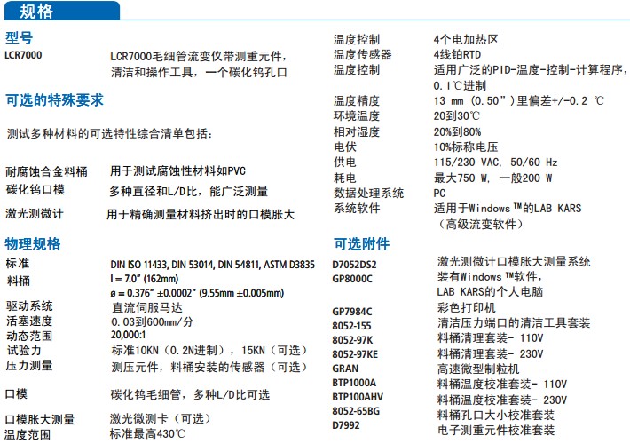 通用性:新的LCR7000系列毛細管流變儀有多種新功能,符合一天24小時車間運行的要求,且精度、可重復性、靈敏度會保持在最高水平。LCR系列流變儀通用性好,操作簡便,且具有提供最精確的材料特性描述,數據分析、報告的功能。LCR7000可以和標準測壓元件和帶有壓力傳感器的料桶一起使用。lXA廣州南創電子科技有限公司