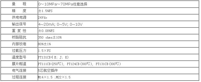 PT111CB壓力傳感器參數(shù):