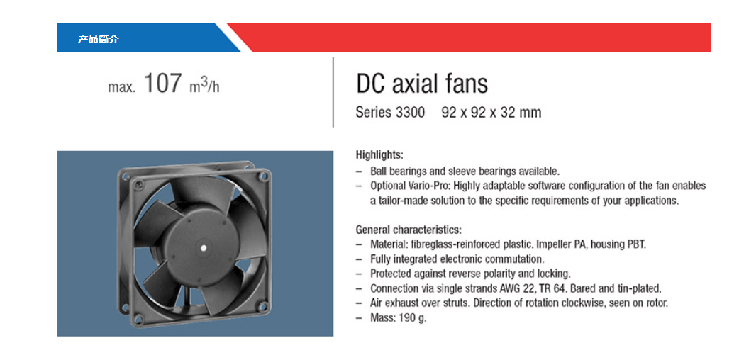 德國ebmpapst風機3314 24DC 2.4W更多產品詳細資料請點擊:ebmpapst風機,進入頁面可查找德國依必安派特風扇3314 24DC 2.4W型號技術參數選型資料,以及ebmpapst風機具體安裝技術指導信息。