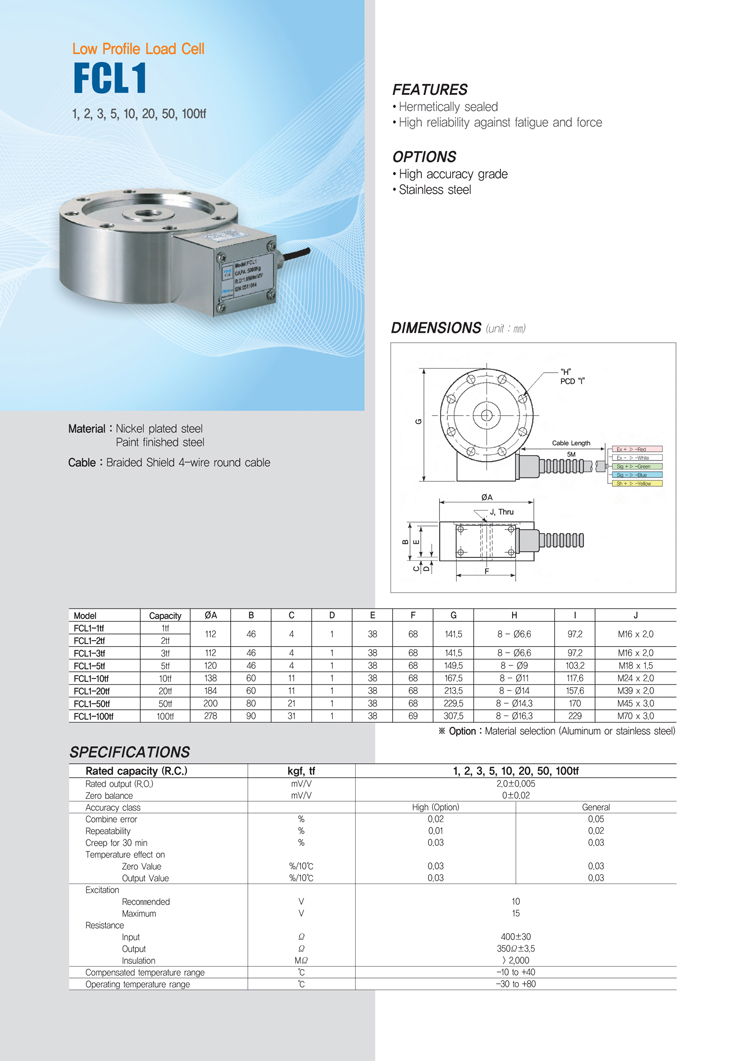 除韓國Fine稱重傳感器 FCL1-10T型號(hào)之外的其它熱門型號(hào):