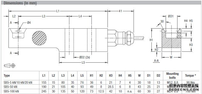 對于SB5-50 kN/100千牛4.5米0JJ廣州南創電子科技有限公司