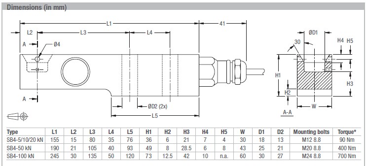 該類型德國FLINTEC稱重傳感器SB4-100kn是完整的不銹鋼梁式稱重傳感器DZG廣州南創電子科技有限公司