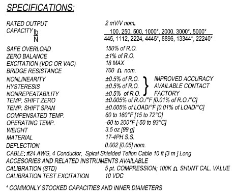 美國FUTEK LTH350稱重傳感器技術參數圖: