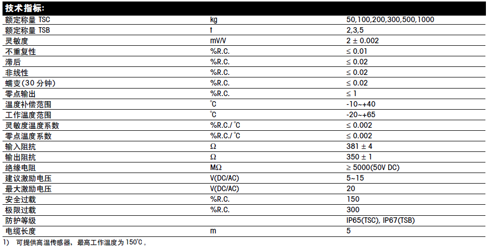 TSC-300稱重傳感器 技術參數:S6T廣州南創電子科技有限公司