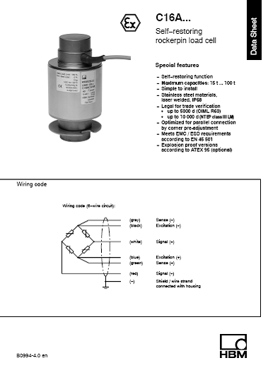 德國HBM C16AC3/30T稱重傳感器技術參數: