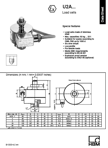 U2A稱重傳感器尺寸小,可用于拉力稱重適用于吊罐稱重, 皮帶秤和分選秤,尤其是中到大型稱重. 由于其非常結實, U2A稱重傳感器尤其適用于建筑行業中的添加劑稱重.