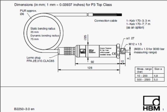 德國HBM p3mb/1000bar壓力傳感器特點與應用:
