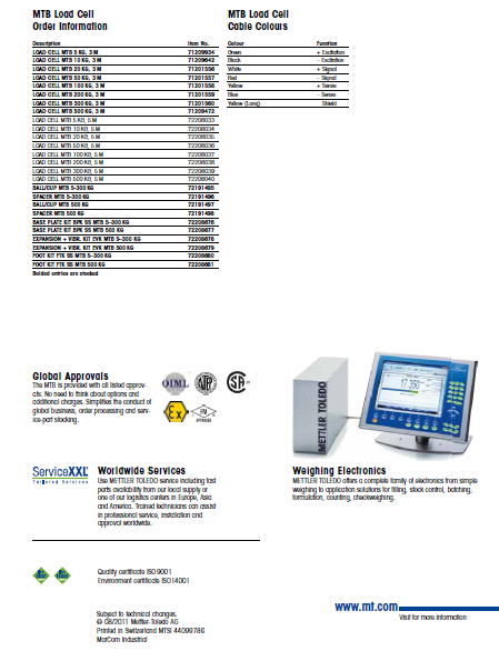 瑞士梅特勒托利多MTB-30稱重傳感器具體型號量程: