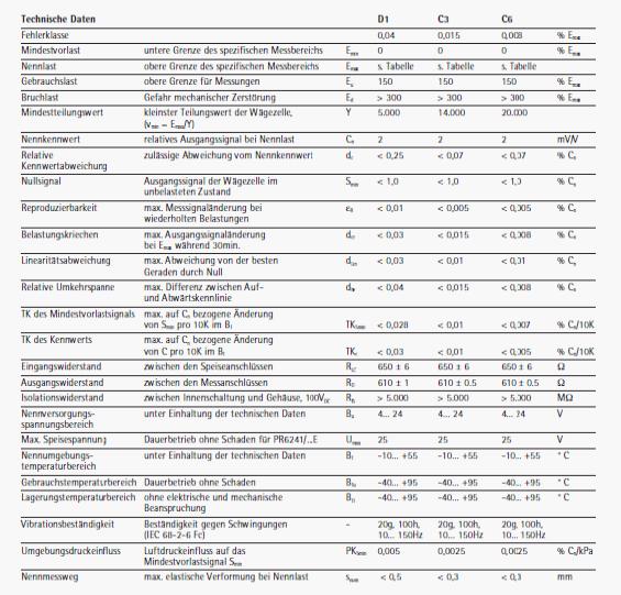 德國sartorius PR6241/13C6稱重傳感器技術參數: