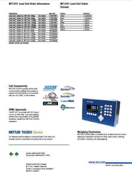 以上是瑞士梅特勒托利多mt1241-100kg稱重傳感器的產品資料,如需了解詳細信息,請登錄網址:http://m.gcqdsjzx.com,找銷售三部找高工程師。