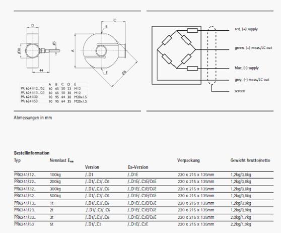 德國sartorius PR6241/22C3稱重傳感器技術參數: