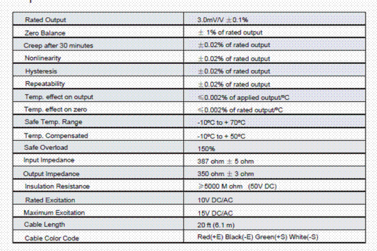 美國Transcell SBSB-2T稱重傳感器主要特性:7Oi廣州南創電子科技有限公司