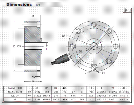 美國Transcell DBSL-3T稱重傳感器技術參數(shù)圖:
