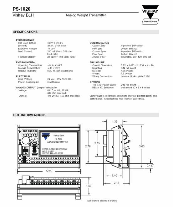 美國BLH PS-1020稱重傳感器技術(shù)參數(shù)圖:YWa廣州南創(chuàng)電子科技有限公司