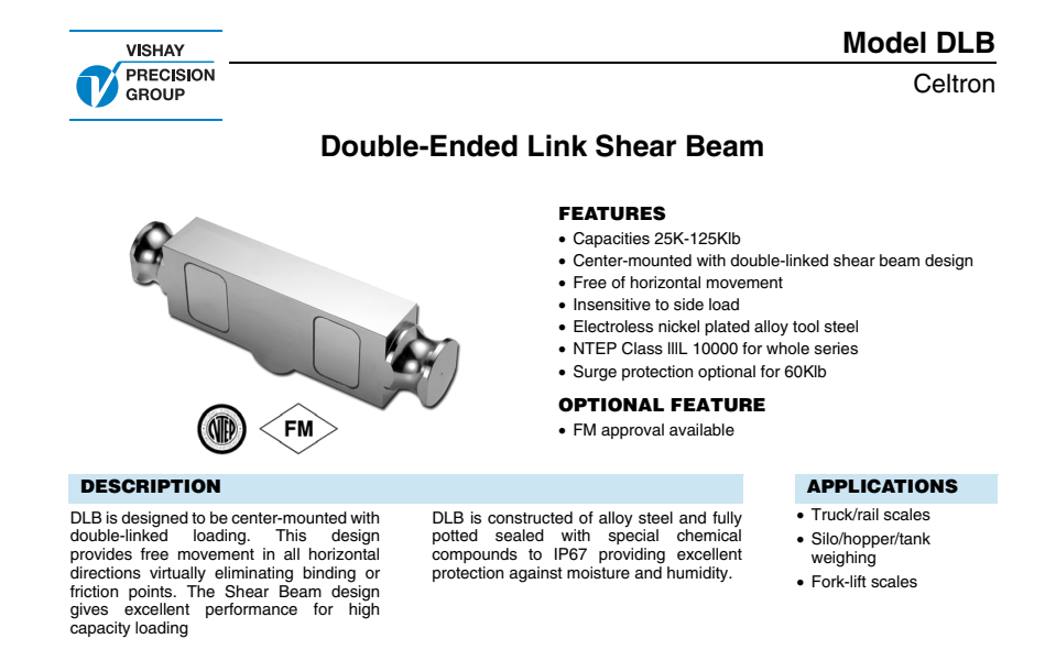 雙剪切梁式DLB系列威世世銓稱重傳感器