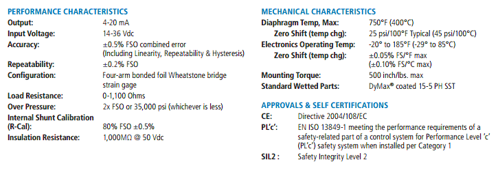 -dynisco PT420A/MDA420傳感器量程:從0-500psi到0-30,000psi;