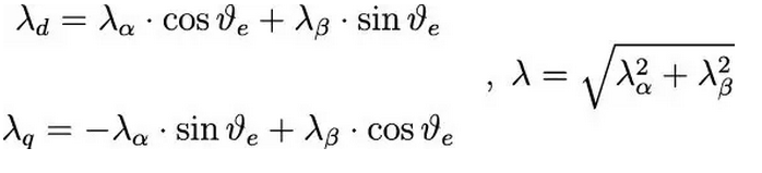 其中 vαβ 和 iαβ 是在靜止參考系上的電壓和電流(α,β) , T 是從電角度得到的電周期(周期)。