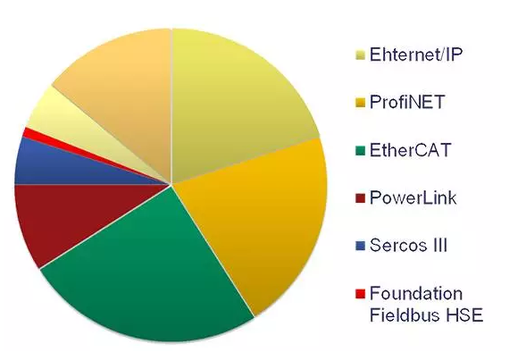 下圖顯示的是全球使用的基于以太網(wǎng)現(xiàn)場(chǎng)總線狀況: