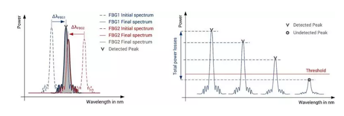 傳感器之間的布拉格波長距離定義了兩個傳感器的最大測量范圍,因為如果信號重疊,測量將受到影響。每個傳感器的使用波長范圍取決于其測量范圍,溫度工作范圍,以及傳感器靈敏度、傳感器交叉靈敏度和材料熱膨脹引起的熱感應波長偏移。