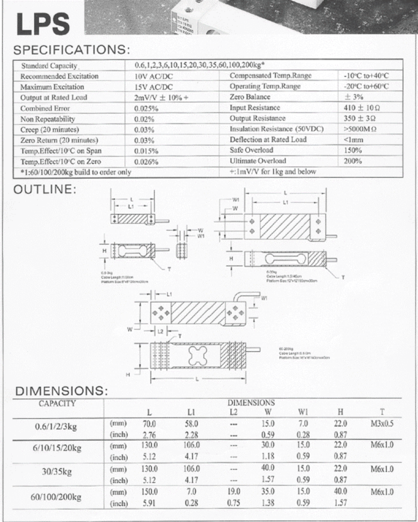 美國世銓Celtron LPS-60kg稱重傳感器主要參數:CZX廣州南創電子科技有限公司
