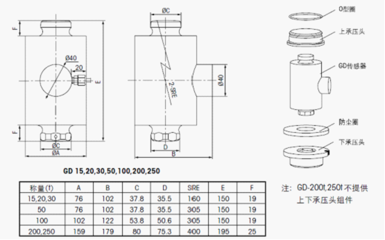 GD-200T GD搖柱式稱重傳感器,容量200T,20M電纜Kg0廣州南創(chuàng)電子科技有限公司