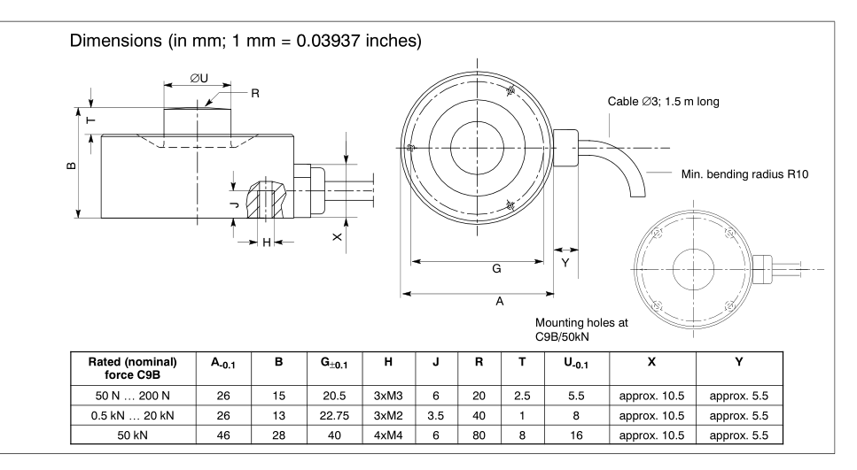 德國HBM力傳感器C9B/1KN尺寸圖:I3S廣州南創電子科技有限公司