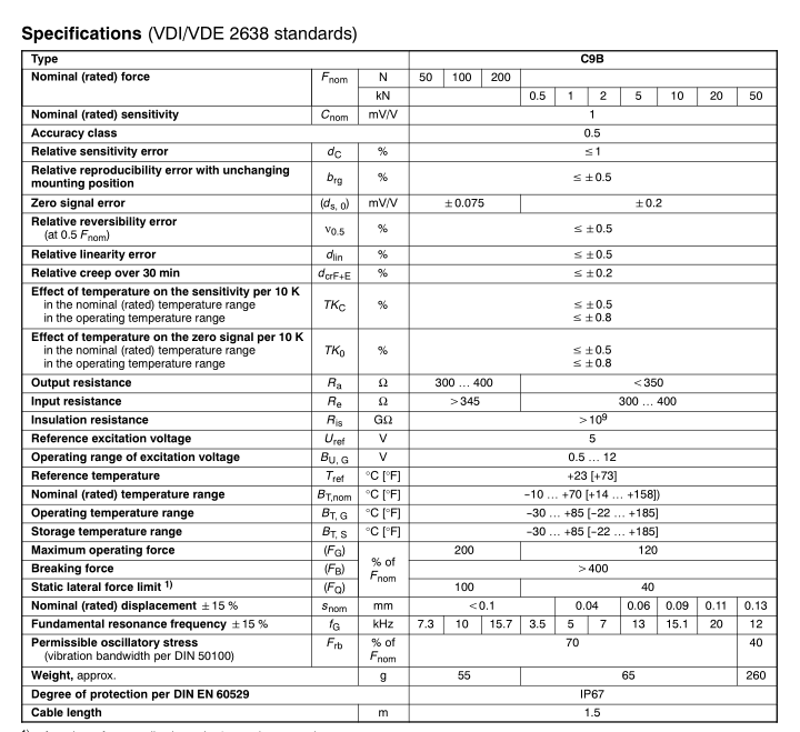 德國HBM力傳感器C9B/0.5KN產品技術參數:I3S廣州南創電子科技有限公司