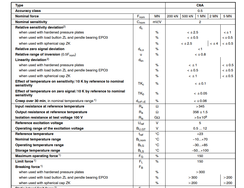 德國HBM力傳感器C6A/1MN產品技術參數:V6a廣州南創電子科技有限公司