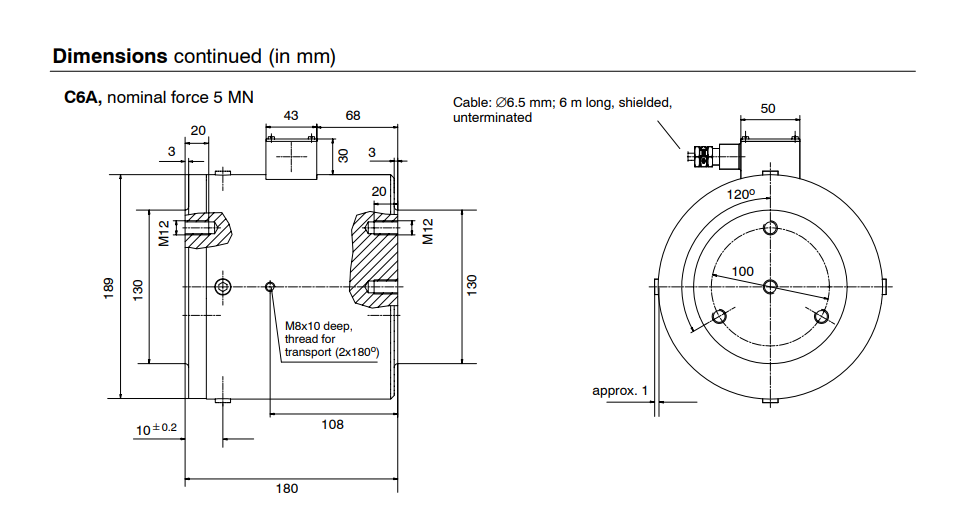 德國HBM力傳感器C6A/2MN尺寸圖:V6a廣州南創電子科技有限公司