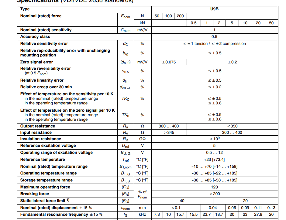 srO廣州南創電子科技有限公司德國HBM力傳感器U9B/50kN產品技術參數:srO廣州南創電子科技有限公司