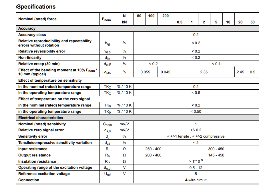 zfZ廣州南創電子科技有限公司德國HBM力傳感器U9C/50N產品技術參數:zfZ廣州南創電子科技有限公司