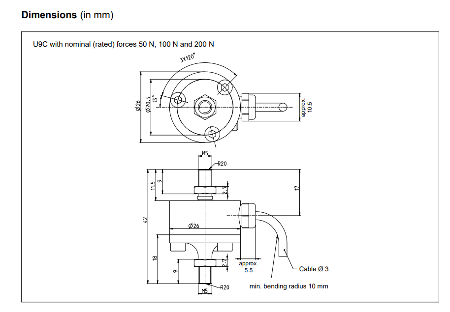 zfZ廣州南創電子科技有限公司德國HBM力傳感器1-U9C/200N尺寸圖:zfZ廣州南創電子科技有限公司