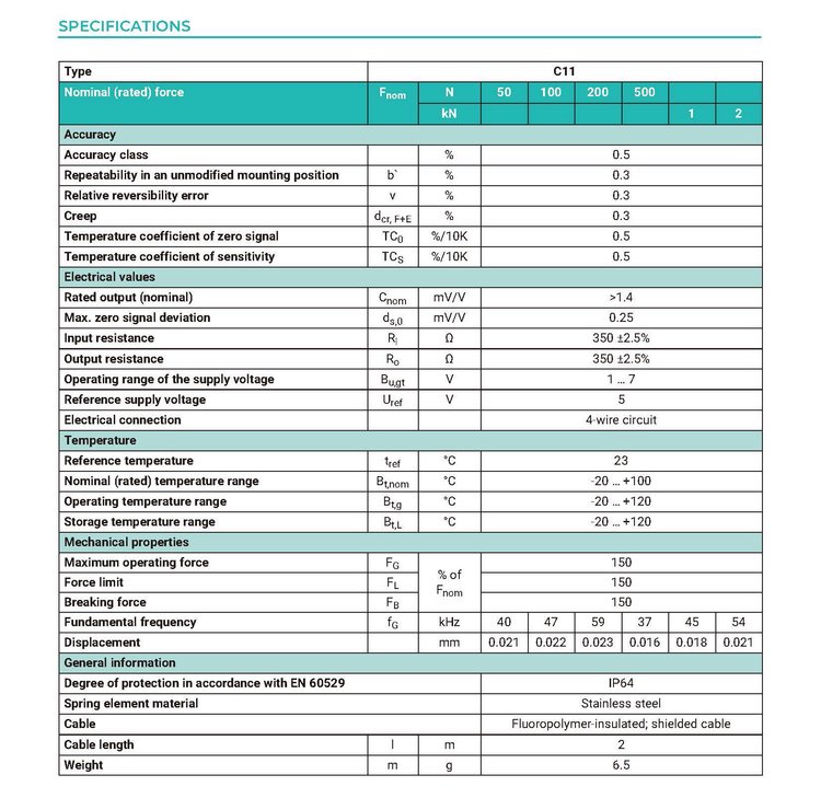 Gep廣州南創(chuàng)電子科技有限公司德國HBM力傳感器C11/50N-3產(chǎn)品技術(shù)參數(shù):Gep廣州南創(chuàng)電子科技有限公司