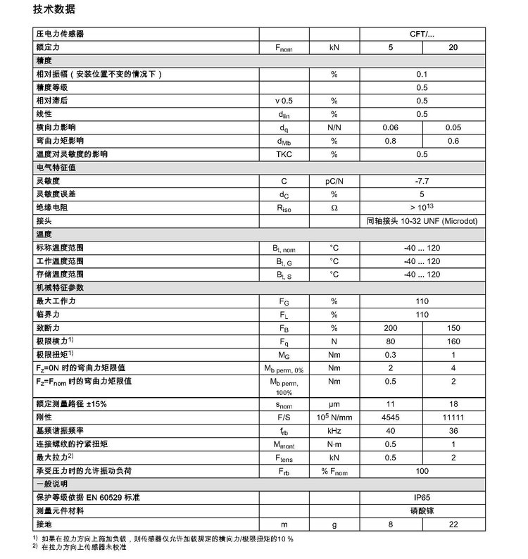 unp廣州南創電子科技有限公司德國HBM力傳感器CFT+/70KN產品技術參數:unp廣州南創電子科技有限公司