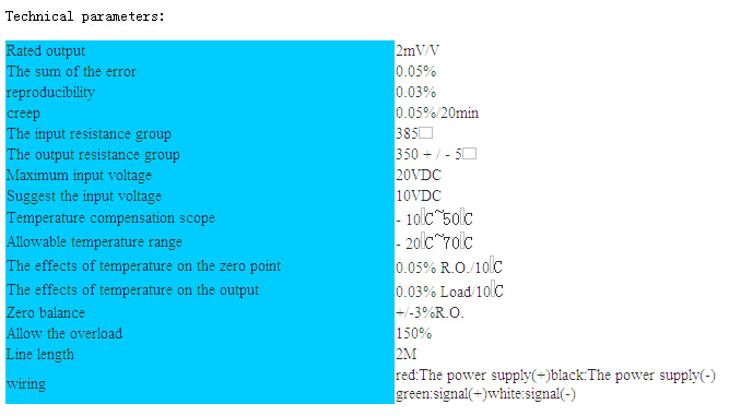臺灣JIHSENSE S型稱重傳感器技術參數圖: