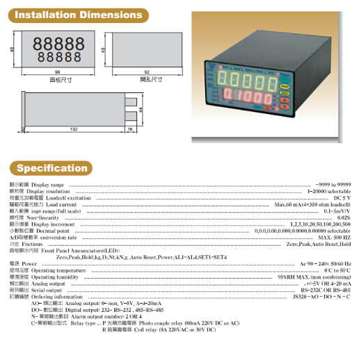 臺灣JIHSENSE稱重顯示控制儀表概述: