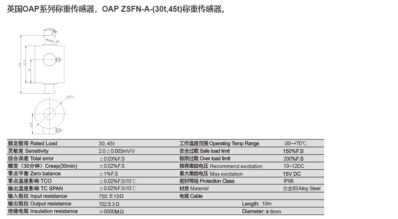 寧波柯力稱重傳感器ZSFN-A-30t產品技術參數及尺寸圖:h6A廣州南創電子科技有限公司