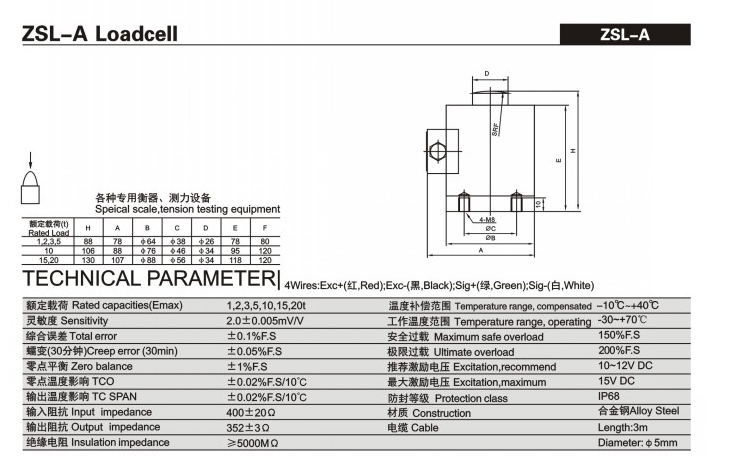 寧波柯力稱重傳感器ZSL-A-(1t/2t/3t/5t/10t/15t/20t)