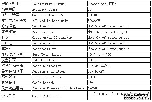 美國柯力ZSF-D-10t稱重傳感器主要參數:CAf廣州南創電子科技有限公司