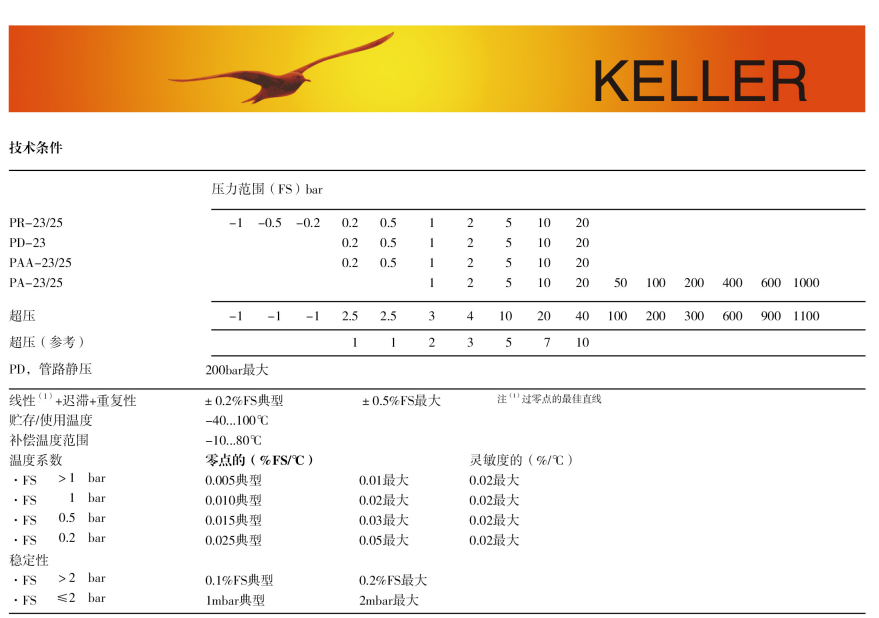 keller壓力傳感器/變送器等產品系列:pWa廣州南創電子科技有限公司