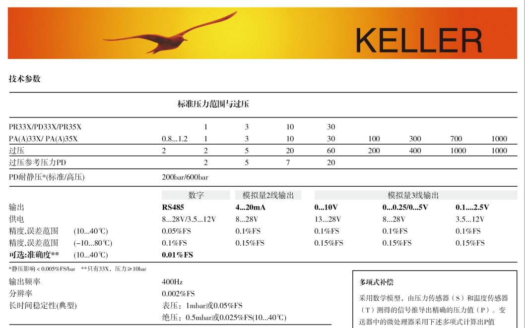 KELLER PA-33X壓力變送器更多產品詳細資料請點擊KELLER壓力變送器進入頁面可查找KELLER壓力傳感器型號、凱樂壓力變送器技術參數選型資料,以及凱樂壓力傳感器具體安裝技術指導信息。roy廣州南創電子科技有限公司