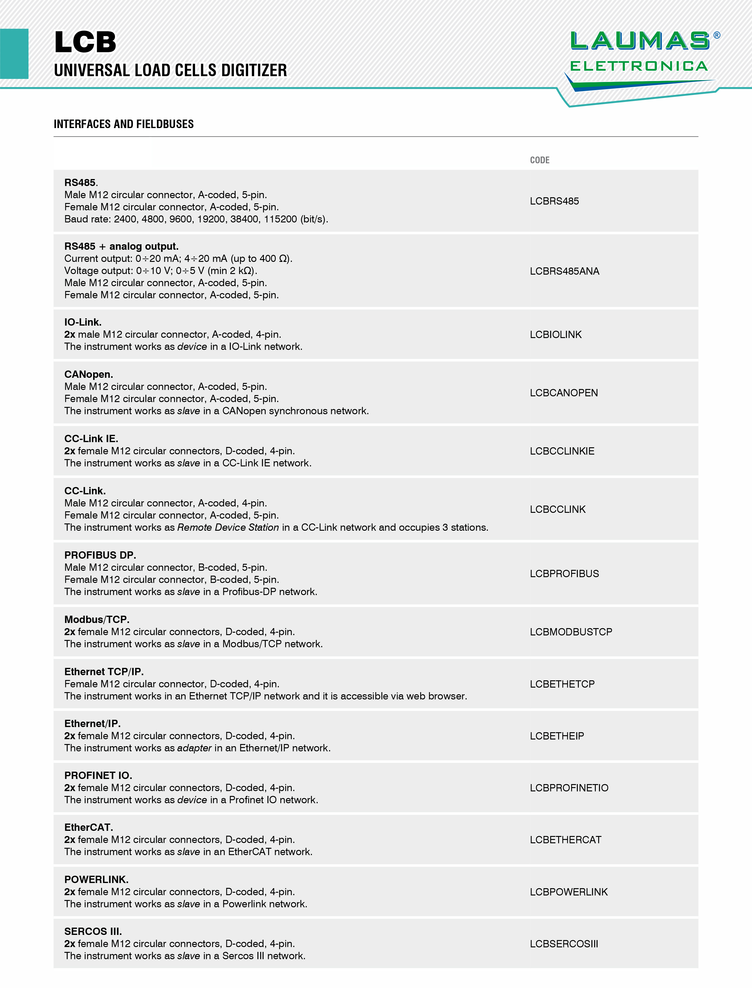 廣州南創專業提供意大利Laumas_LCB重量變送器,原裝正品,質量保證,貨期短,美國CHECKLINE打造頂級傳感器品牌,【華南區★一級經銷商】做中國的,世界的工業備品備件分銷專家,(LCBRS485、LCBRS485ANA、LCBIOLINK、LCBCANOPEN、LCBCCLINKIE、LCBCCLINK、LCBPROFIBUS、LCBMODBUSTCP、LCBETHETCP、LCBETHEIP、LCBPROFINETIO、LCBETHERCAT、LCBPOWERLINK、LCBSERCOSIII)訂購方便,還可以享受當地個性化支持,免費技術支持,歡迎來電訂購。