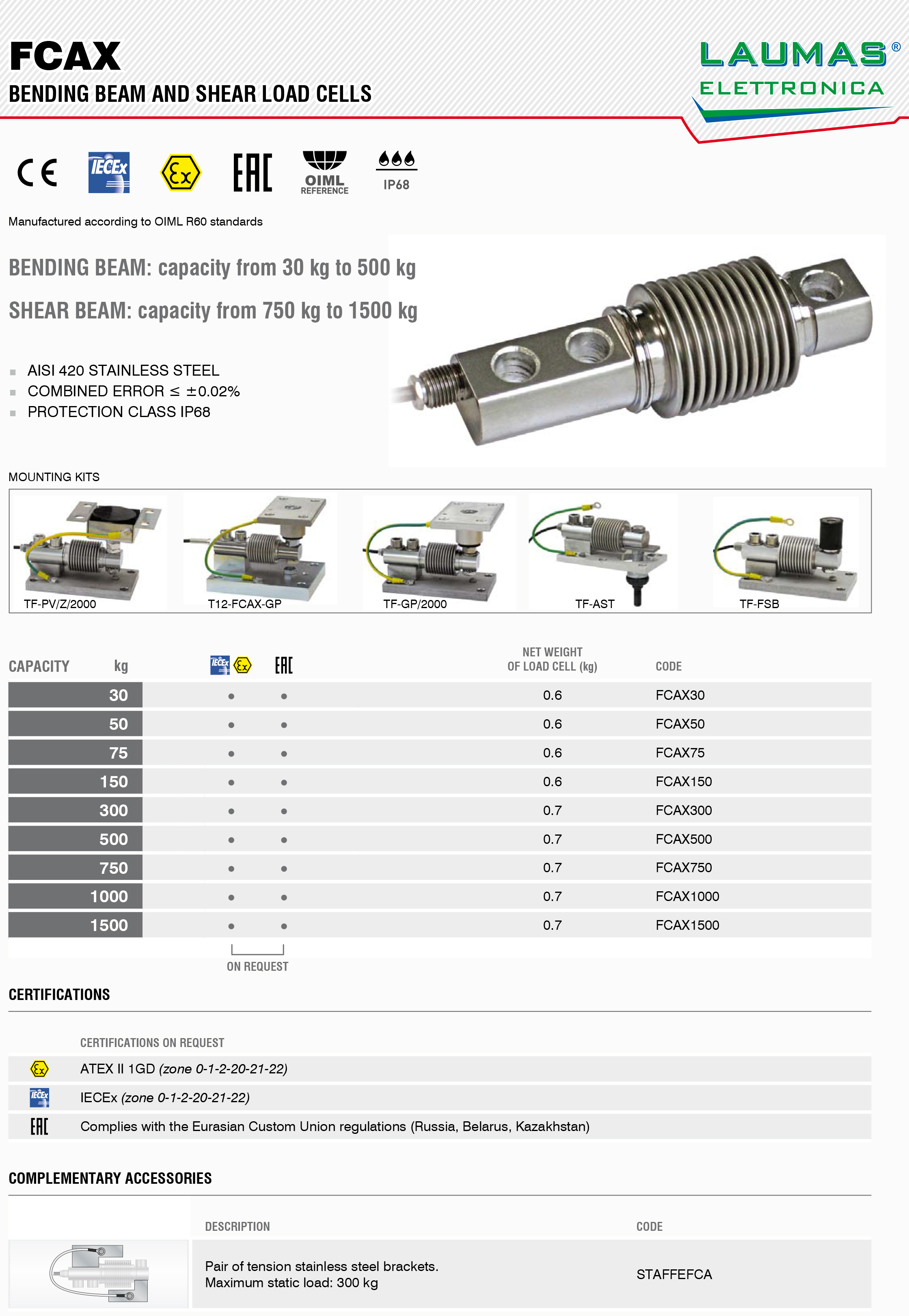 廣州南創專業提供意大利Laumas_FCAX稱重傳感器,原裝正品,質量保證,貨期短,意大利Laumas打造頂級傳感器品牌,【華南區★一級經銷商】做中國的,世界的工業備品備件分銷專家,(FCAX-30Kg、FCAX-50Kg、FCAX-75Kg、FCAX-150Kg、FCAX-300Kg、FCAX-500Kg、FCAX-750Kg、FCAX-1000Kg、FCAX-1500Kg)訂購方便,還可以享受當地個性化支持,免費技術支持,歡迎來電訂購。
