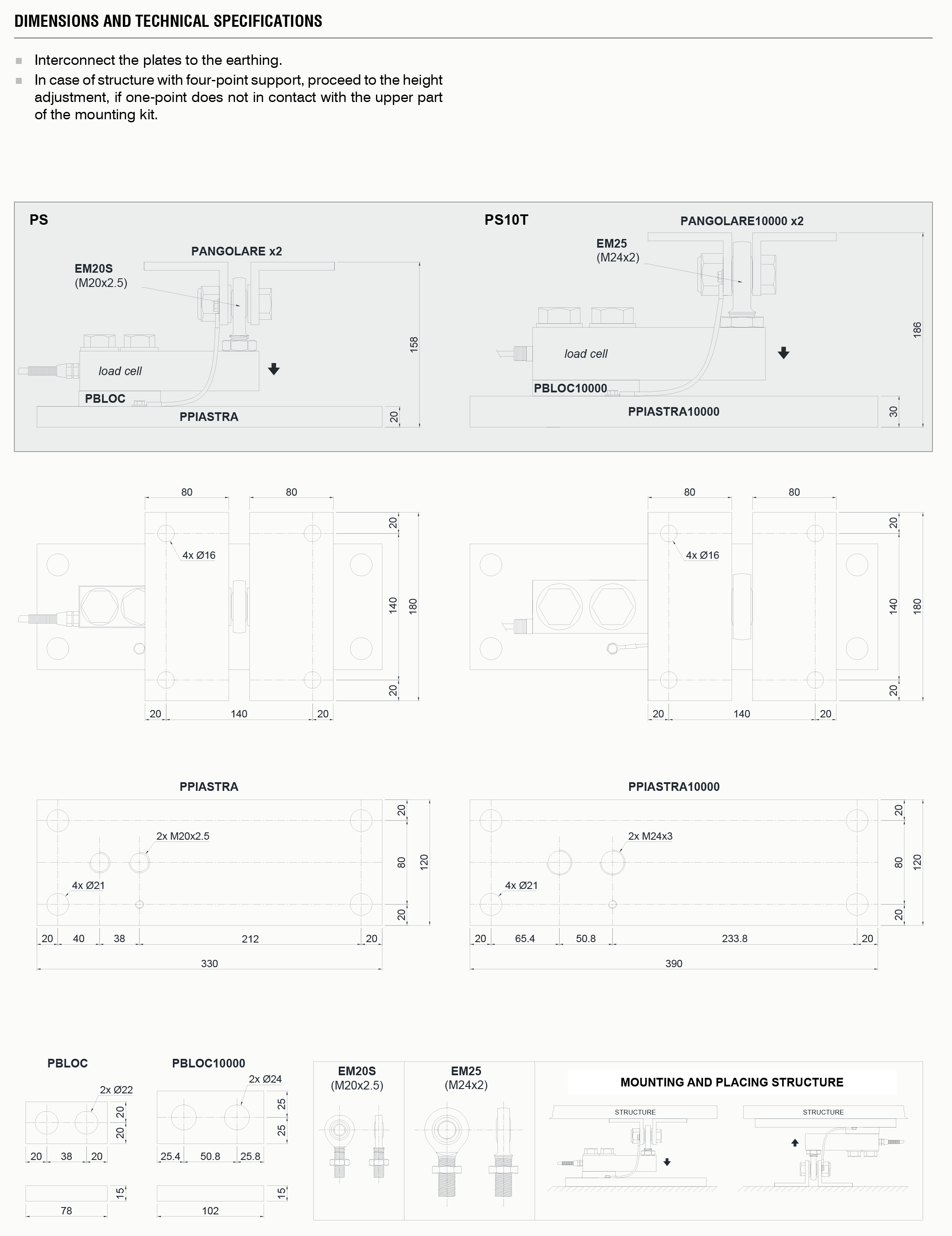 Hot worked galvanized mounting kit designed for silos, mixing machines, tanks, hoppers subject to vibrations because of parts in motion. Provided with a ball joint, adjustable height, against lateral forces and anti-tilt to compensate for misalignment of the support plates.