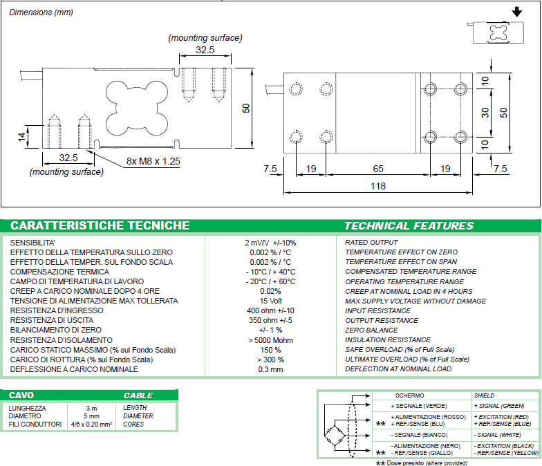 在額定負載偏轉:0.3 mm精度等級C3(OIML R60)
