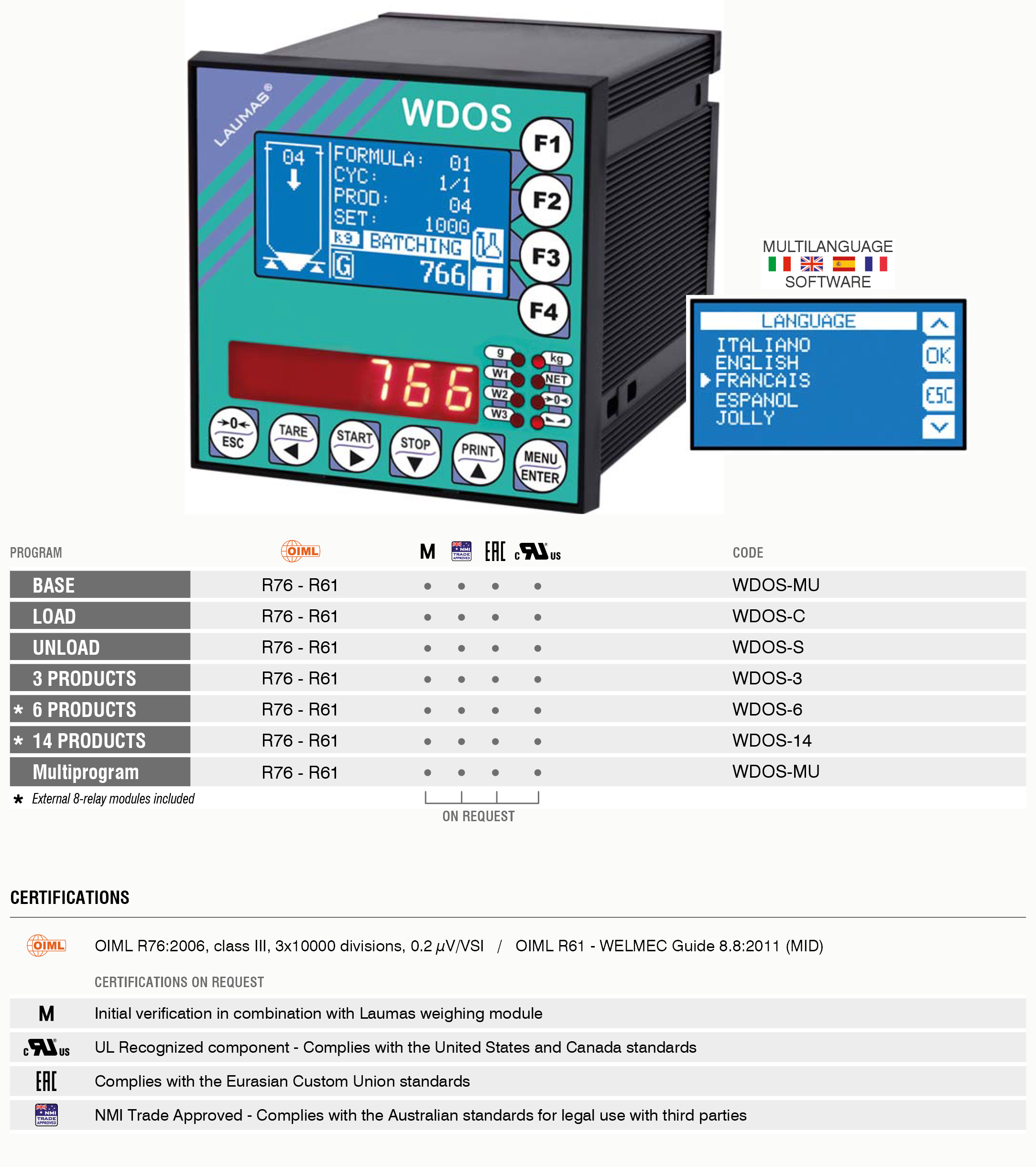 產品名稱:WDOS稱重顯示控制器意大利laumas