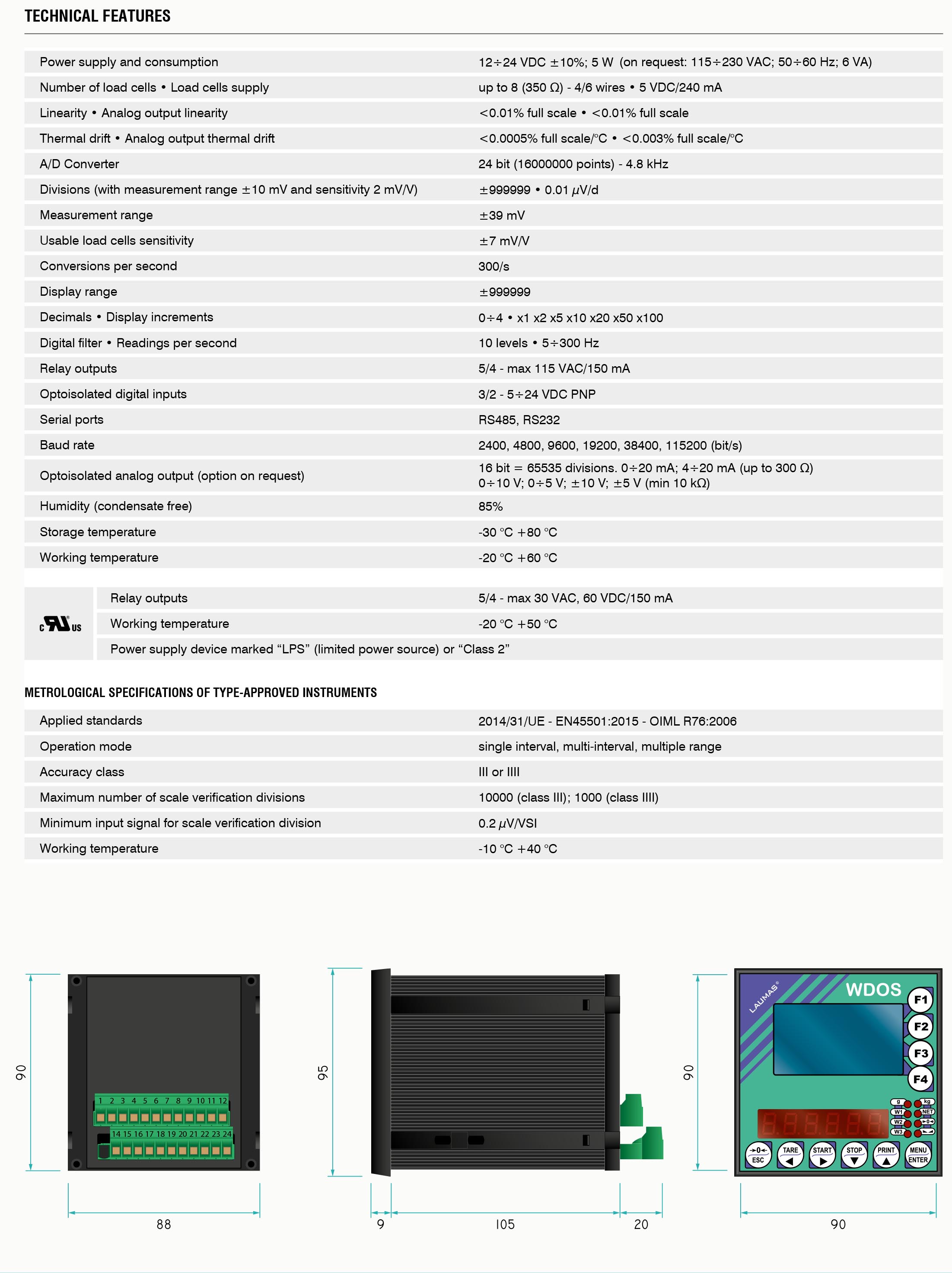 WDOS稱重儀表產品技術參數