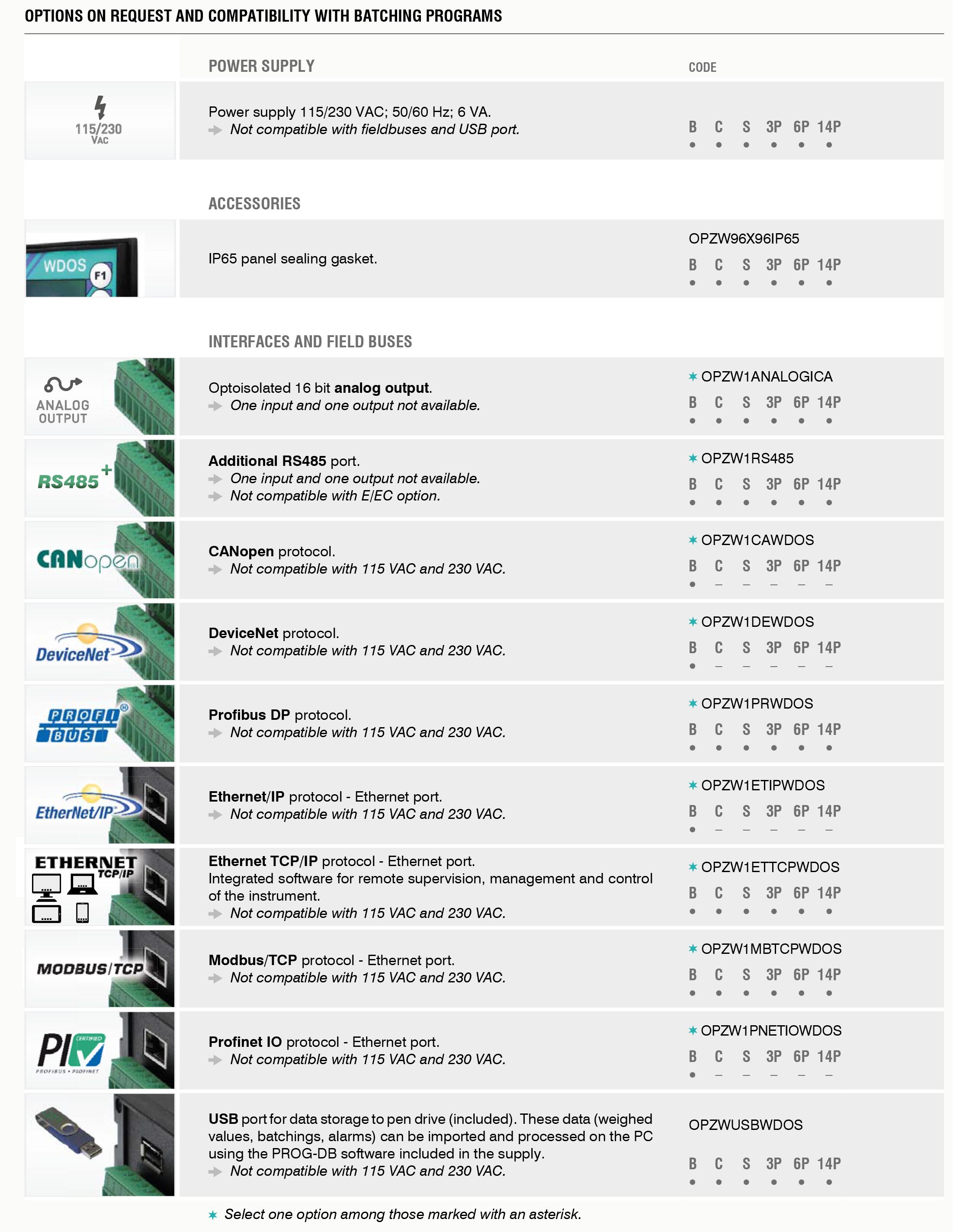 Optional fieldbuses: Profibus DP, DeviceNet, CANopen, Profinet IO, Modbus/TCP, Ethernet/IP. Ethernet TCP/IP port for remote management via internet from PC, smartphone or tablet, etc.