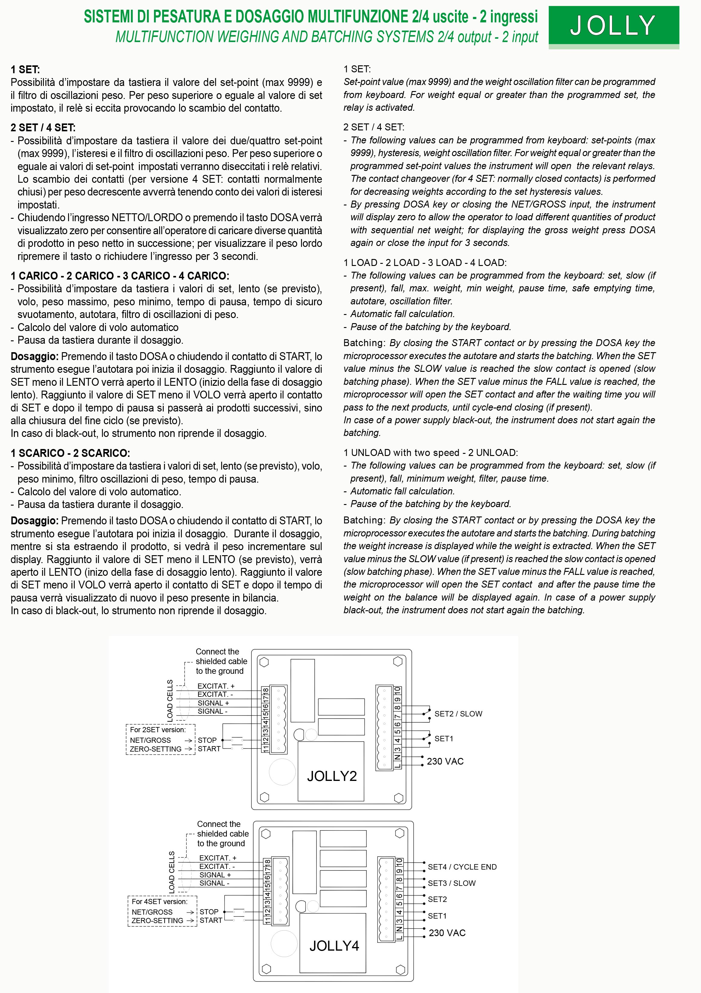 READING THE LOAD CELLS VALUE expressed in mV. CHECKING THE LOAD CELLS CONNECTION with safety function (drop-out relays).